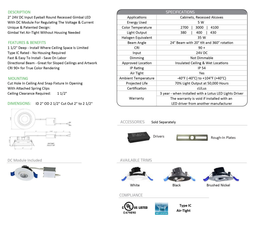 2" Round Recessed Gimbal